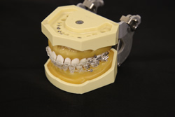 マルチブラケット法とは、ブラケットという装置を動かしたい歯の表面に装着し、ワイヤーを通して歯列を整える方法です。