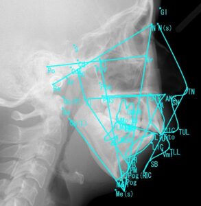 👆このセファログラム(頭部X線規格写真)の分析・計測が、矯正歯科の診断では必須であり、重要です!!最近ではCTスキャンを応用する場合もあります。